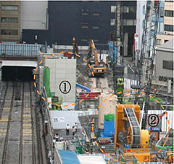 この写真は工事情報として、7月23日・24日に近隣の東急百貨店東横店・奥野ビル・宮益坂ビルの皆様にご協力いただき撮影いたしました。
