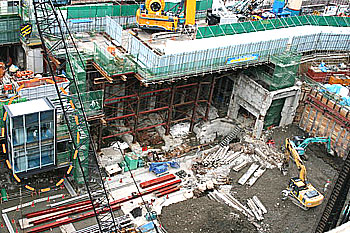 渋谷新文化街区、新築工事の最後部で一般通路では、この角度の状況は見られません。